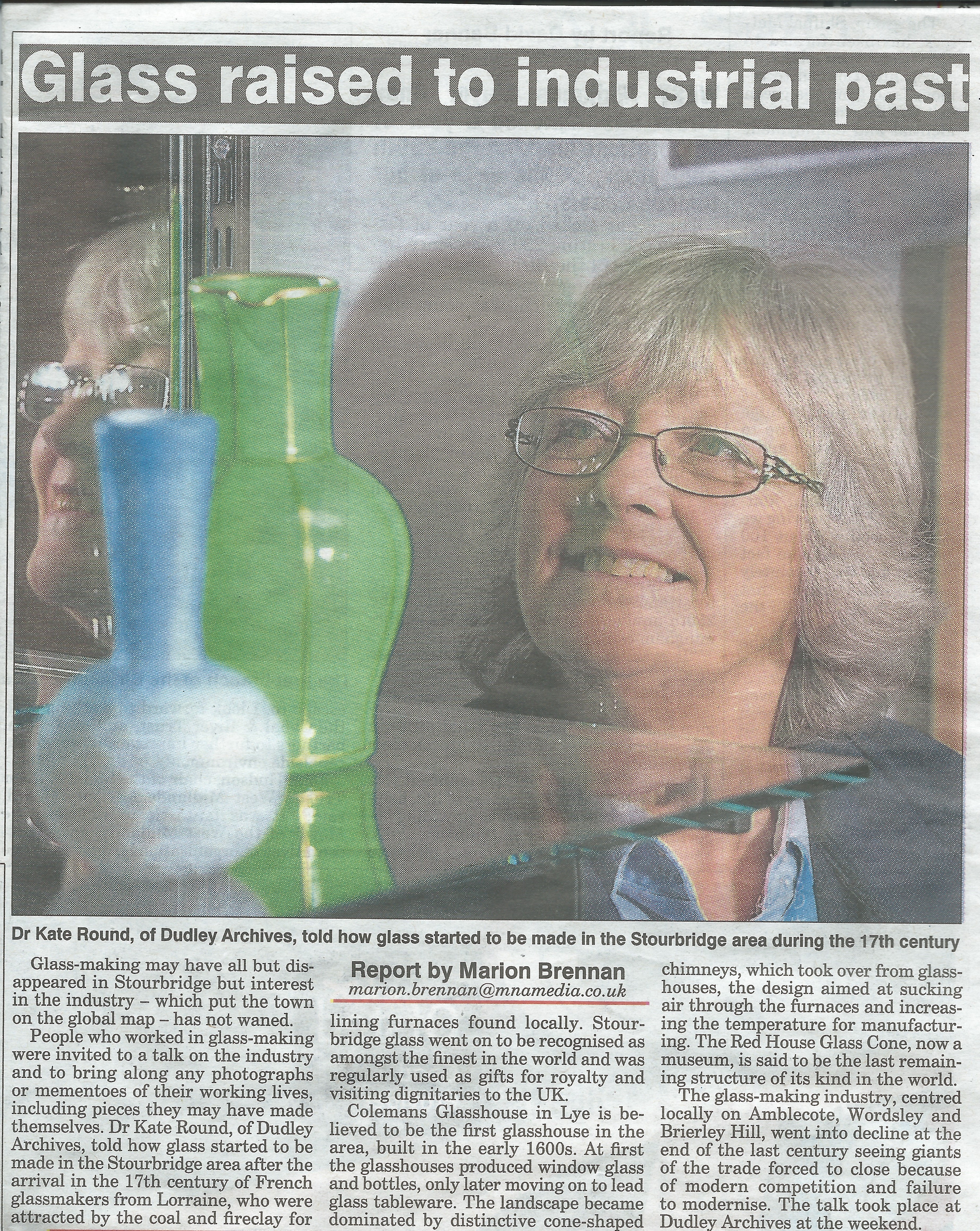 I work as an outreach worker for Dudley Museum Service, based at The Red House Glass Cone in Stourbridge. In my normal life I do guided tours of the Cone, and Outreach talks on The Stourbridge Glass Industry.